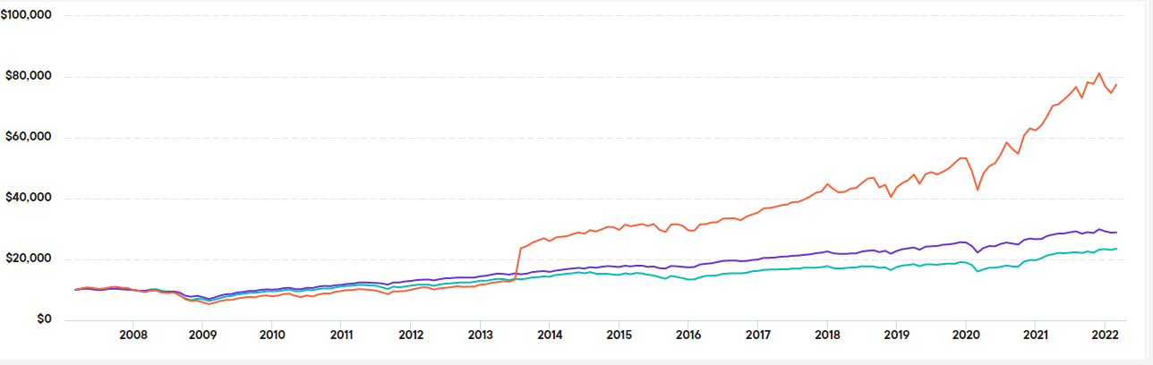 Invested on January 19, 1993. SPY's return more than double of that of FKNX but did dip down lower than FKINX during the 2008 crisis.